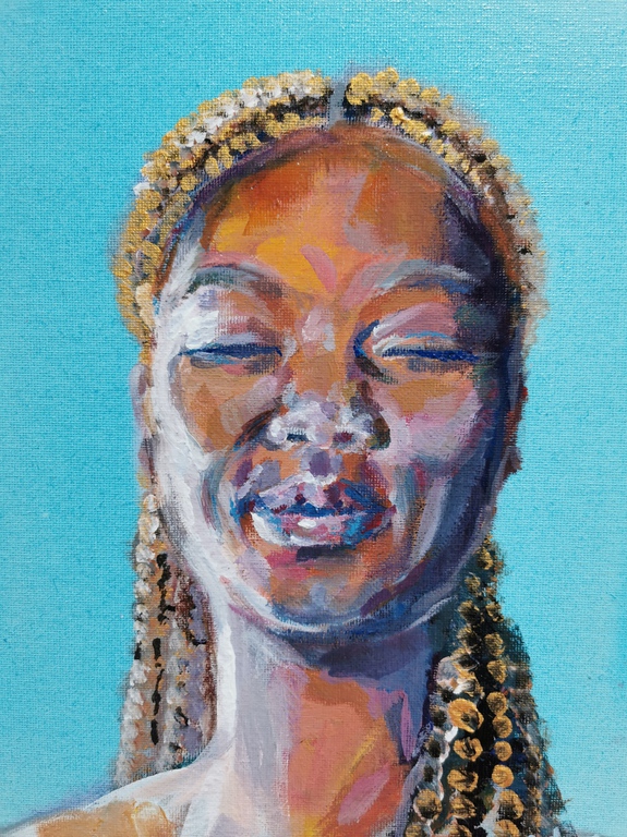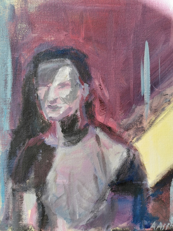 This series began with Resting Face (2020), a portrait that was exhibited at the International Anthony Burgess Foundation in March 2020. The day after the exhibition, it became clear that the UK would soon enter a lockdown. This series of self-portraits has developed since, although other models have been painted via Instagram Live and video calls.
